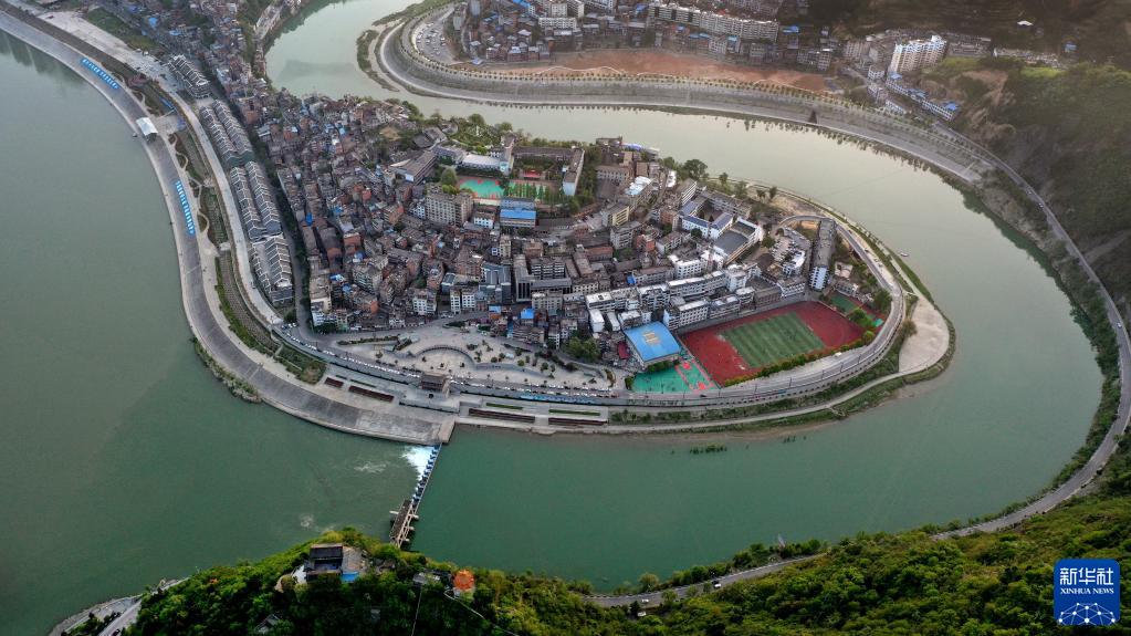 秦巴山の奥深くに位置する陝西省旬陽市の市街地は、漢江と旬河が合流するエリアに位置する。曲りくねる旬河が市街地を「陰陽両魚島」に区分し、漢江に流れ込み、独特な地形と景観を呈する。