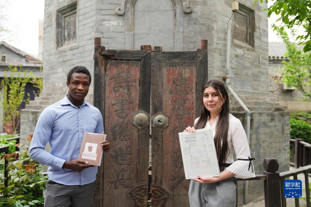 北京交通大学で学ぶニックさんは、トルクメニスタン出身の同級生・唐一泓さんと北京正陽書局で国際ボランティアをしている。