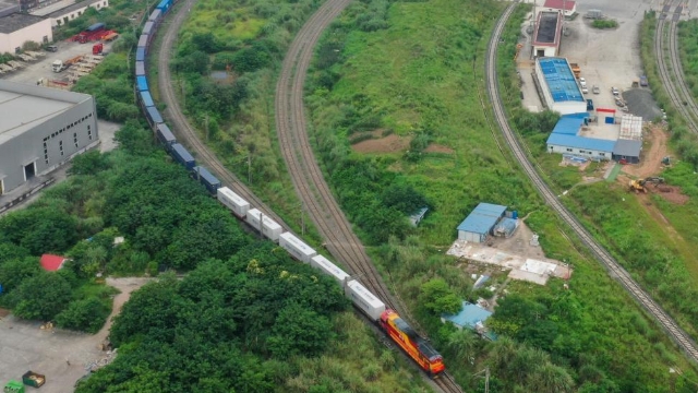 陸海新通道国際連帯輸送試験列車(重慶〜西藏〜南アジア)が発車