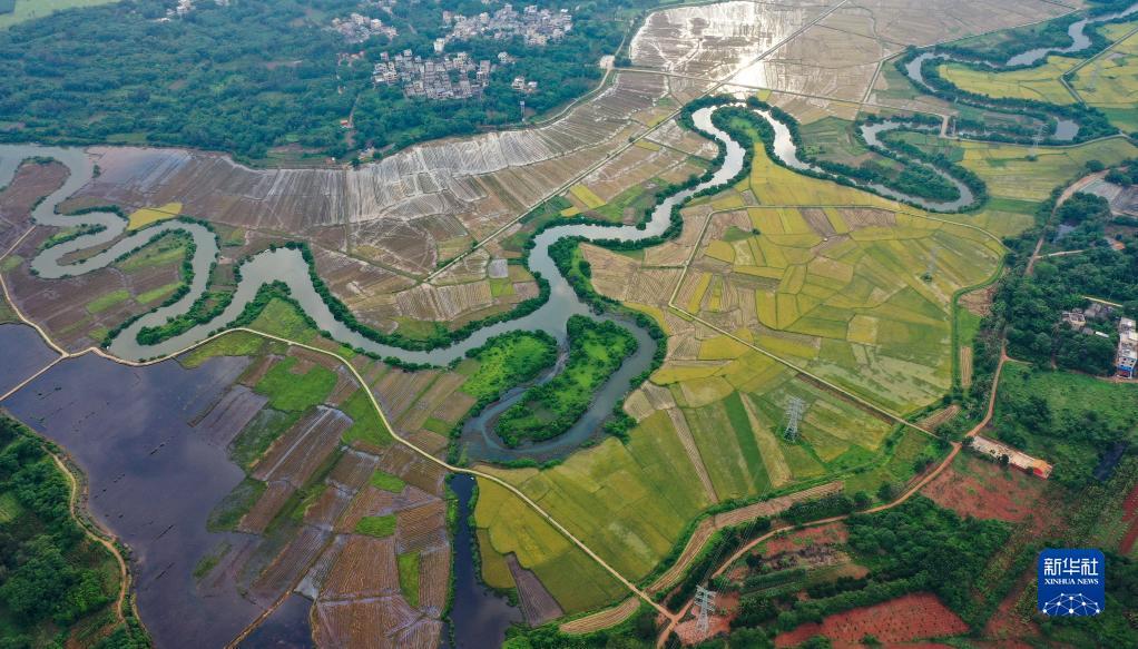 海口市 三十六曲渓両岸が夏の稲刈り時期を迎える
