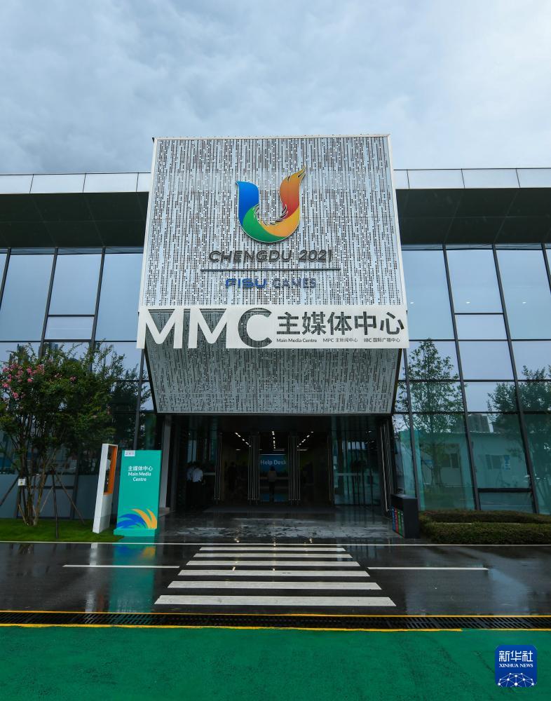 13日、成都ユニバのメインメディアセンター西側の入り口。(成都=新華社記者/王曦)