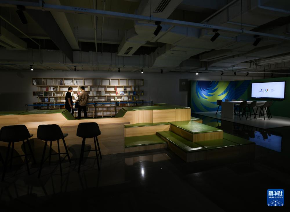 13日、成都ユニバのメインメディアセンターに設けられた娯楽スペース。(成都=新華社記者/王曦)