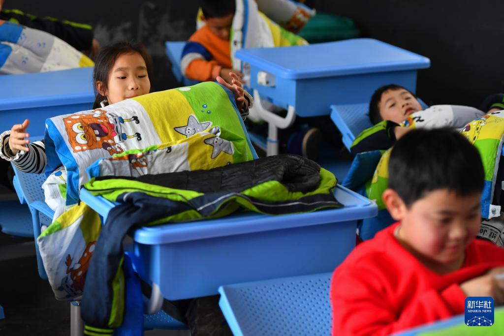湖南省瀏陽市 学校の机と椅子が「昼寝ベッド」に