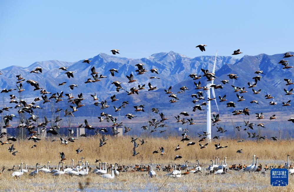 河北省懐来県は近年、生態給水、「退耕還湿」(耕作をやめて湿地に戻す)などの措置を通し、官庁ダムの生態系を回復させ、湿地の生態環境を改善している。この行動が功を奏し、野生鳥類の数は大幅に増加し、鳥の群れが飛ぶ様子が頻繁にみられるようになった。