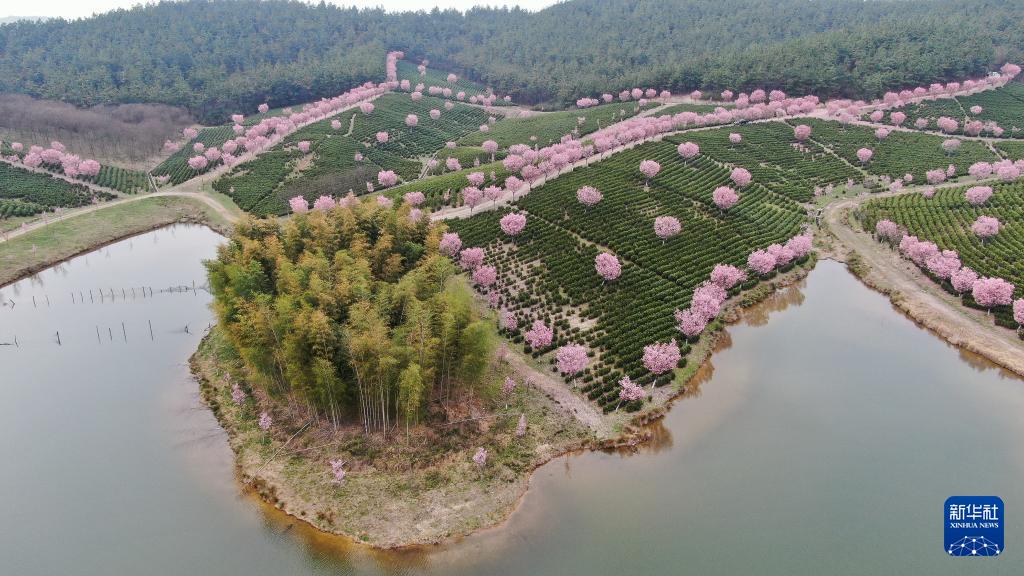 江蘇省溧陽市 桜が茶畑を彩る