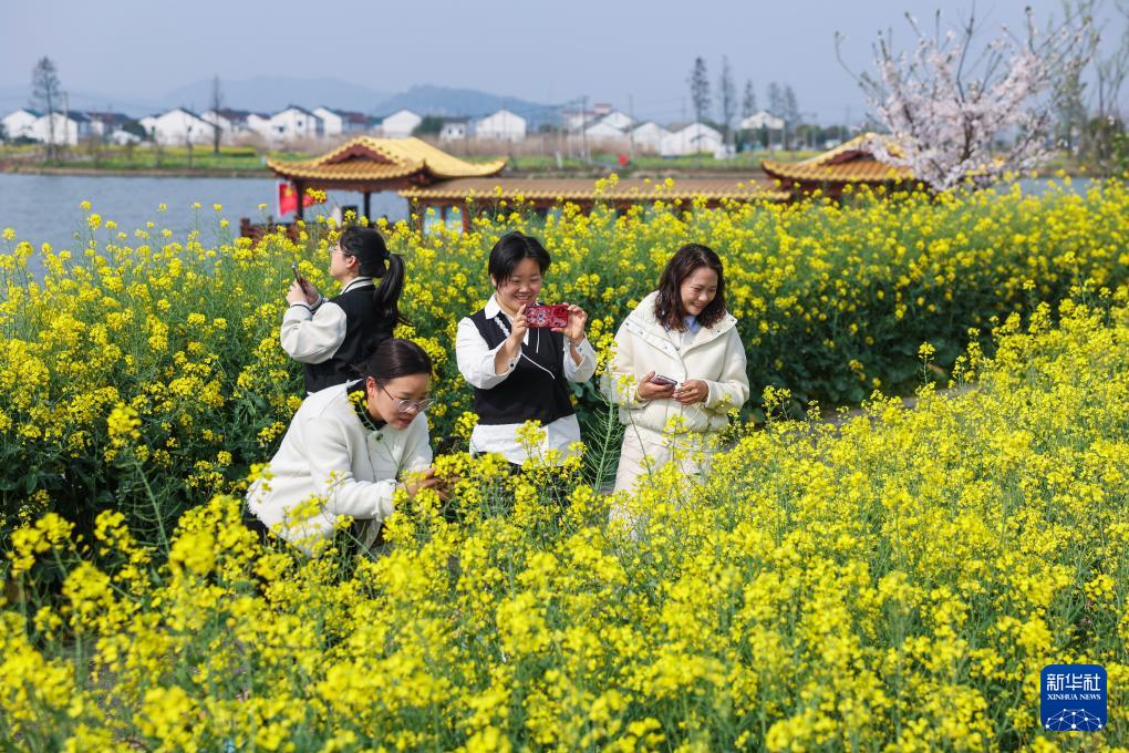 浙江省紹興市 水郷の湿地で春の菜の花祭が開催
