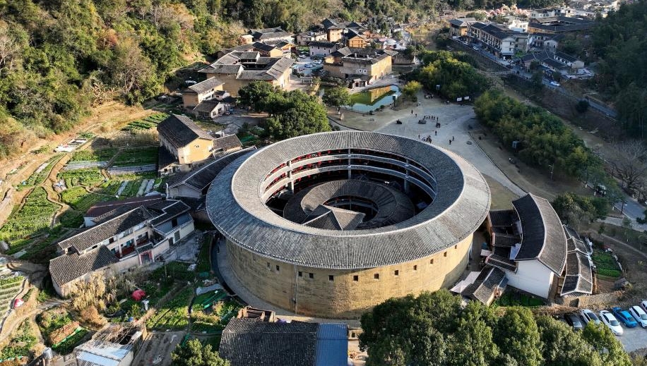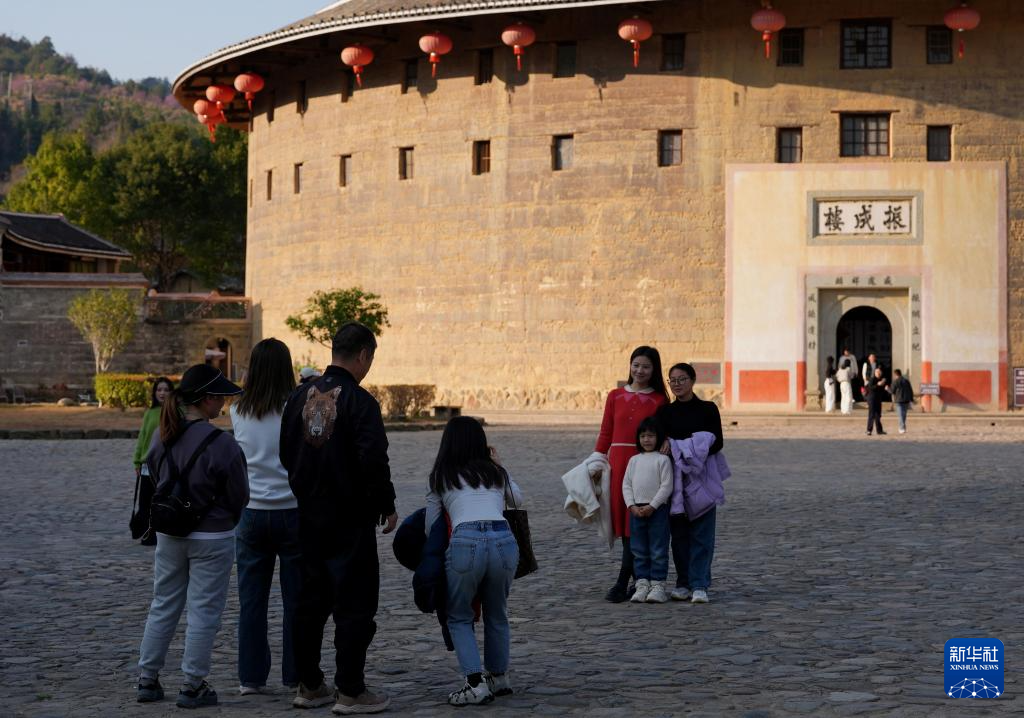 春節が近づき、福建省龍岩市永定区の土楼に多くの観光客が訪れている。「福建土楼」は客家(ハッカ)人の団欒の思い出を残すだけでなく、地方から多くの観光客を引き寄せている。「福建土楼」は2008年に世界遺産に登録された。