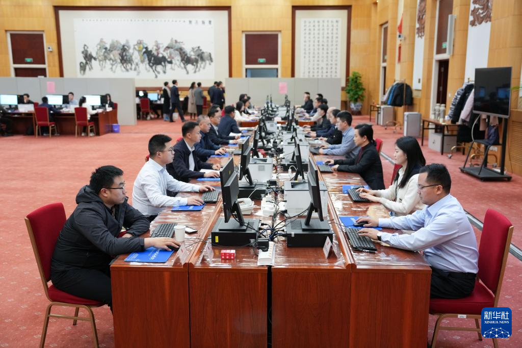 3月9日、真剣に作業する第14期全国人民代表大会第3回会議の事務局職員