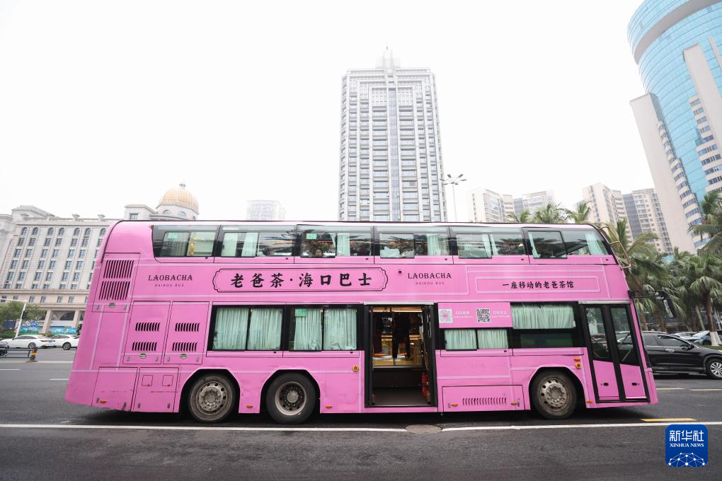老爸茶・海口バスの消費財博覧会シャトルバス、海口の魅力を伝える