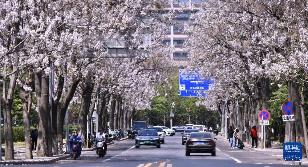 「ホウトウ大通り」と称される北京市経済技術開発区の宏達路両側でこのほど、ホウトウの花が見頃を迎えた。