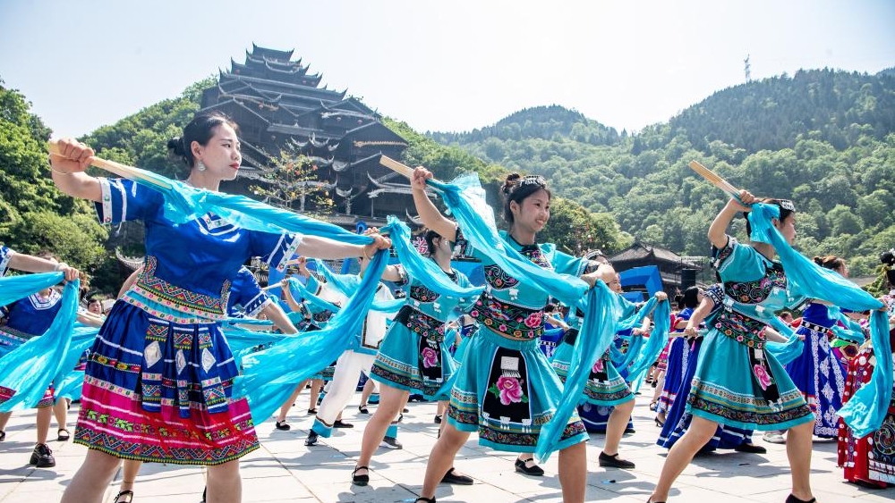 第14回烏江苗(ミャオ)族踩花山節(歌垣祭り)が4月28日、重慶市彭水苗族土家(トゥチャ)族自治県の蚩尤九黎城で開幕した。全国各地から訪れた観光客と民族衣装をまとった住民が「嬌阿依」を合唱し、「踩花山」を踊り、ミャオ族伝統の祭日を祝った。