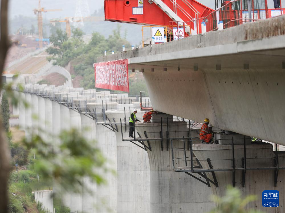 西渝高鉄・康渝区間駅で第7工区初のボックスガーダー架設に成功