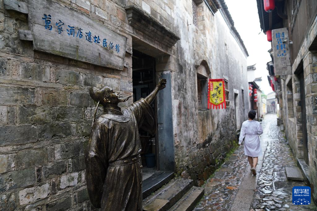 安徽宣城涇県桃花潭町で、観光客が散策していた。新華社記者馬寧5月15日撮影