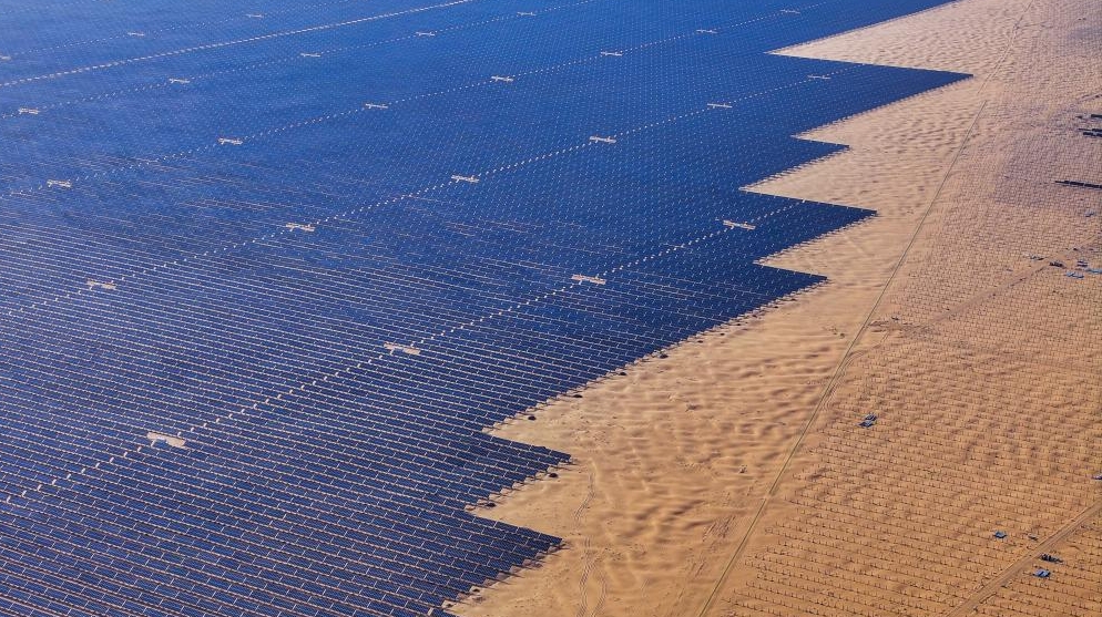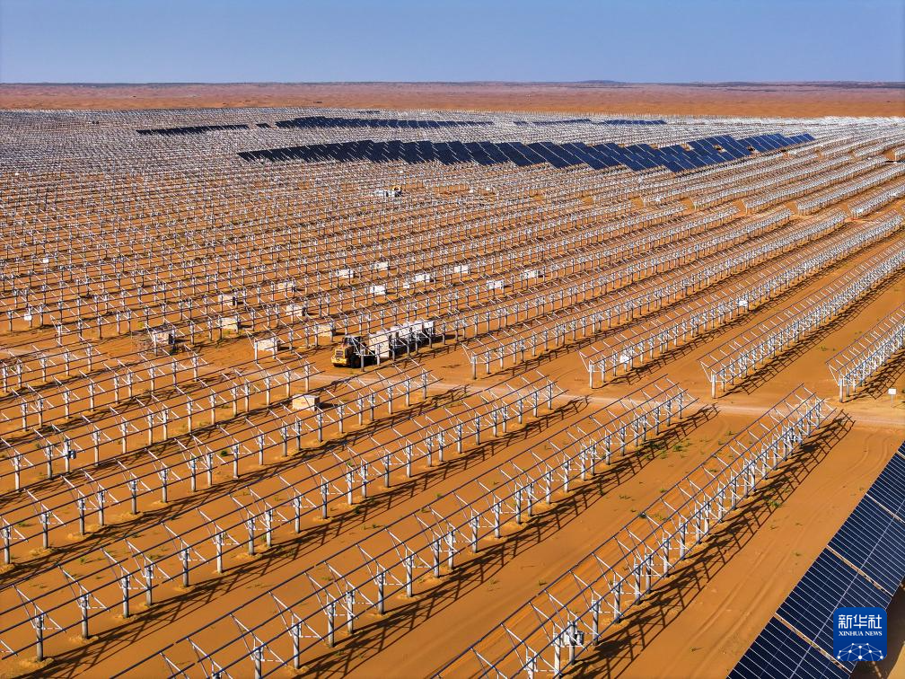 ここ2年間、内蒙古自治区は黄河「几字湾」防衛戦に取り組み、累計で1489万ムーの砂漠化地域を整備した。クブチ砂漠とウランプハ砂漠で、「太陽光発電を活用した砂漠緑化」モデルが広く導入され、砂漠の海に「グリーンエネルギー」が躍動する「青い海」が出現している。
