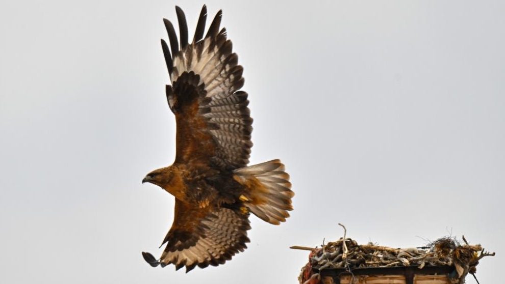 西蔵自治区尼瑪(ニマ)県羅布玉傑(ロブユジェ)野生動物保護管理ステーション長の格桑倫珠氏によると、猛禽類は草原の齧歯類の天敵で、その生存と繁殖は自身の存続に影響を与えるだけでなく、より広範な生態系において生態バランスを維持する役割を果たしている。羌塘(チャンタン)草原では樹木が不足しているため、猛禽類は地面に巣を作らざるを得ず、外敵によるヒナの死亡率が極めて高かった。林業・草原部門が近年、羌塘草原に止まり木を設置した結果、猛禽類のヒナの生存率が著しく上昇。齧歯類の過剰繁殖による局地的な草原退化現象の防止にも効果を発揮し、草原の生態バランスの維持に貢献している。