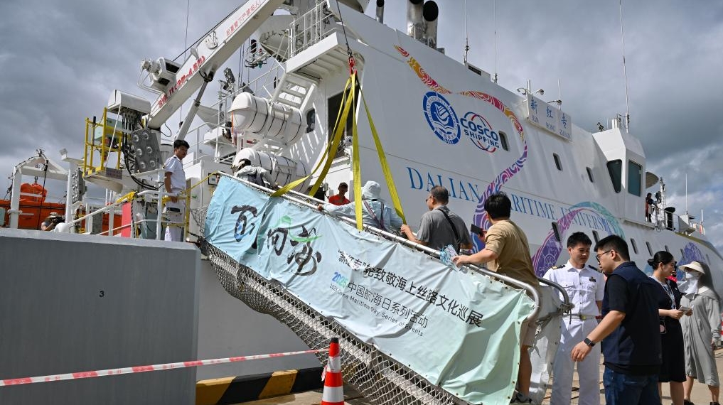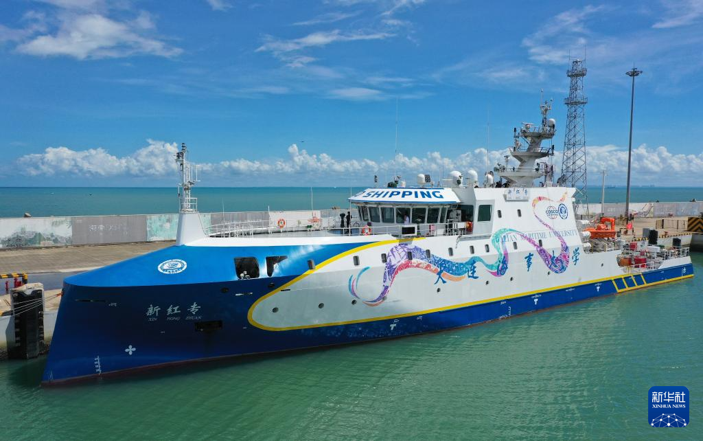 百川向海——「新紅専」号海上シルクロード表敬文化巡回展が3日、海口新海港で一般公開された。世界初の知能研究・教育実習兼用船「新紅専」号を間近で見学できる。同船は、スマート航行やスマートプラットフォームなどの6つのスマートシステムを搭載。運転、機関、電気などの設備を深く融合し、自律操作を実現できる。