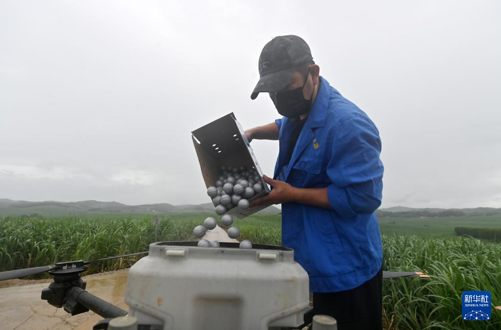 広西壮(チワン)族自治区植物保護ステーションの技術スタッフは23日、上思県の昌菱農場サトウキビ栽培地域で、メイチュウ類の生物的防除としてトビコバチ類の放し飼いを行った。