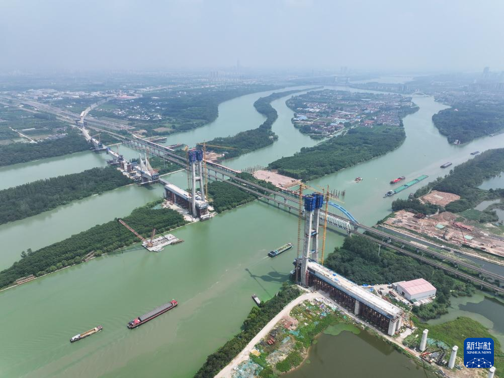 滬渝蓉高速鉄道・京杭大運河斜張橋の主塔が完成