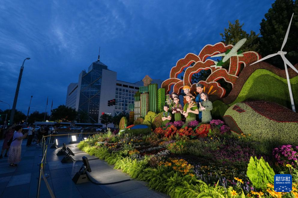 北京、長安街沿いの花壇設置が完了