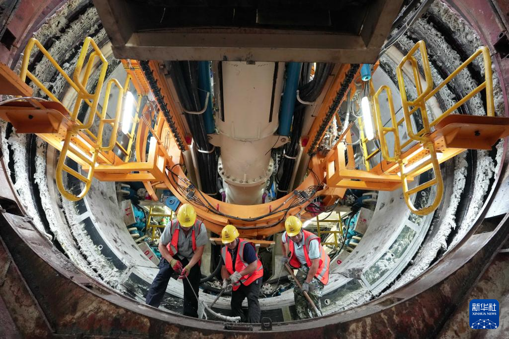 写真は中国鉄道二十局グループの作業員が石家荘市地下鉄5号線一期工事03工区の建設現場で作業する様子(8月27日撮影)