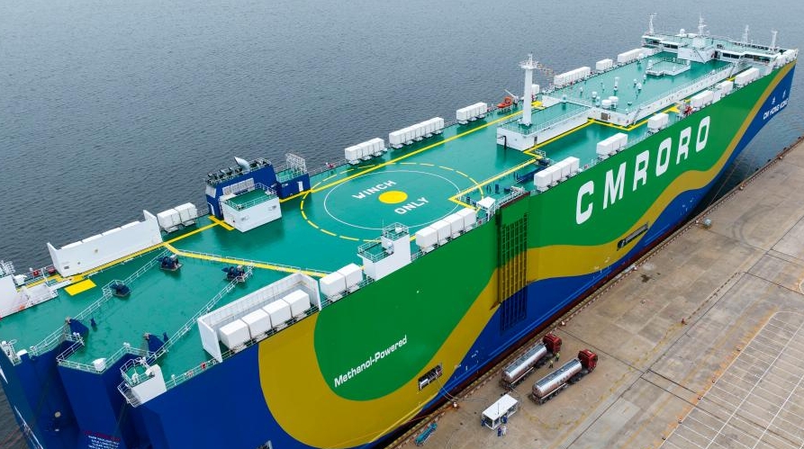 メタノール二元燃料エンジン自動車運搬船「港栄輪」が22日、天津港グローバルRORO船ターミナルに寄港し、300トンの国産グリーンメタノールの陸上給油作業を実施した。これは天津港がグリーンメタノール大規模供給能力を備えたことを象徴する出来事だ。