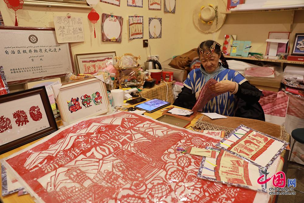 新疆の無形文化遺産継承者・王革さん 切り絵で民族の文化を紹介