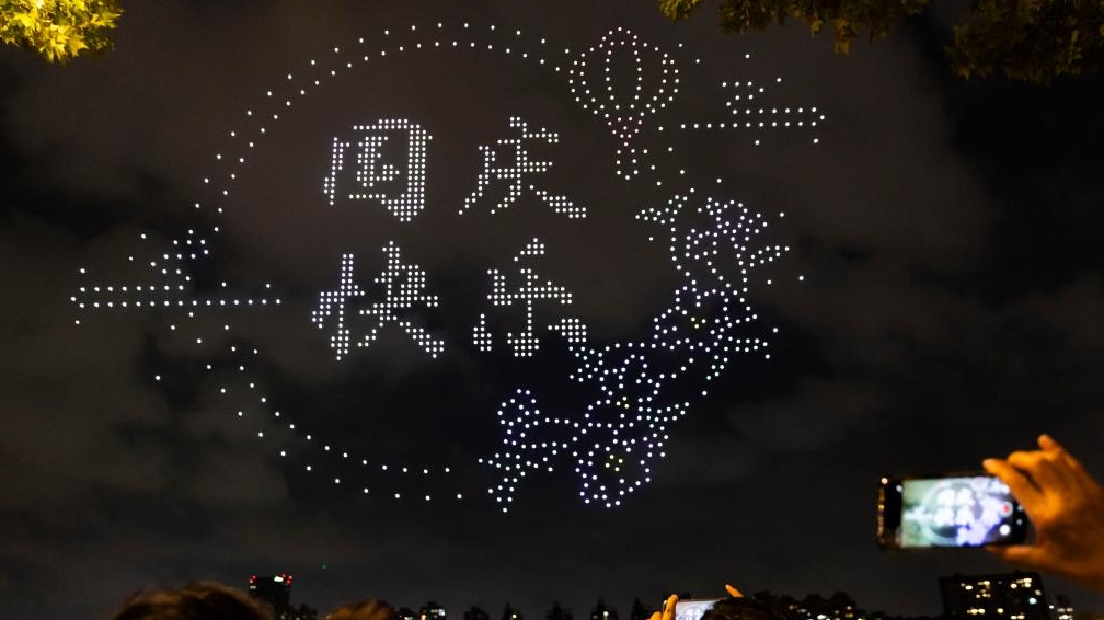 「世紀の輝き――ドローンライトショー」が27日、上海世紀公園で開催された。1千機のドローンが鏡天湖の上空で「国慶節おめでとう」「浦東はあなたを歓迎します」などの文字や、玉蘭、蓮、梅などの花の図案を形成。国慶節の連休を前に、市民や観光客に視覚の饗宴を提供した。