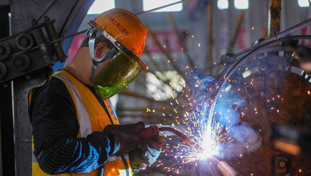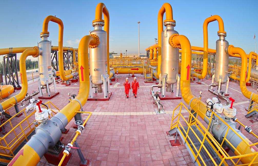 1日、河北省秦皇島市海港区の国家管網集団北方管道秦皇島作業区で、北部の天然ガスを南部に送る「北気南下」エネルギールートの設備を点検する技術者。(北京=新華社配信/曹建雄)