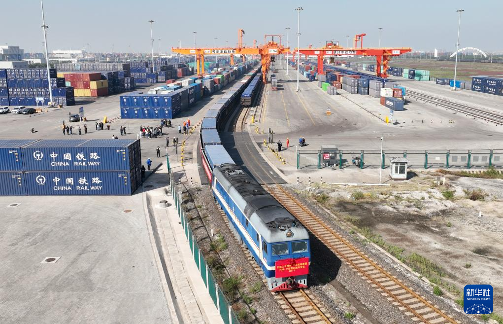 家電製品や自動車部品などを満載した中亜(中央アジア)班列が13日、中国鉄道天津コンテナセンター駅を出発した。霍爾果斯(ホルゴス)通関地を経由してカザフスタンなどの中央アジア諸国へ向かった。