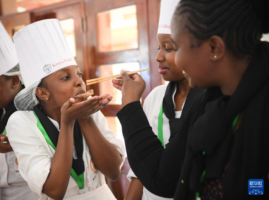 10月30日、ケニアの首都ナイロビで開催中の2025世界中国料理アフリカ大会で、調理直後の料理を試食・評価する出場選手たち。