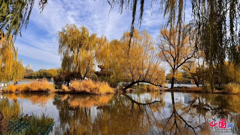 晩秋を迎えた北京市の紫竹院公園では、彩り豊かな秋景色が広がっていて、多くの市民や観光客が秋を満喫しに訪れている。