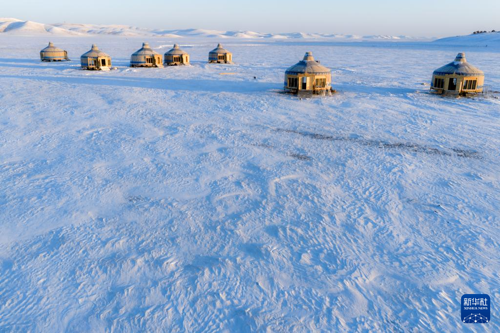 冬の呼倫貝爾草原は真っ白に染まる。内蒙古自治区呼倫貝爾市の陳巴爾虎旗に位置する莫爾格勒河は、雪原を曲がりくねって流れる。パオ(移動式住居)がその間に点在し、静かで壮大な北国の冬の絵巻を広げる。