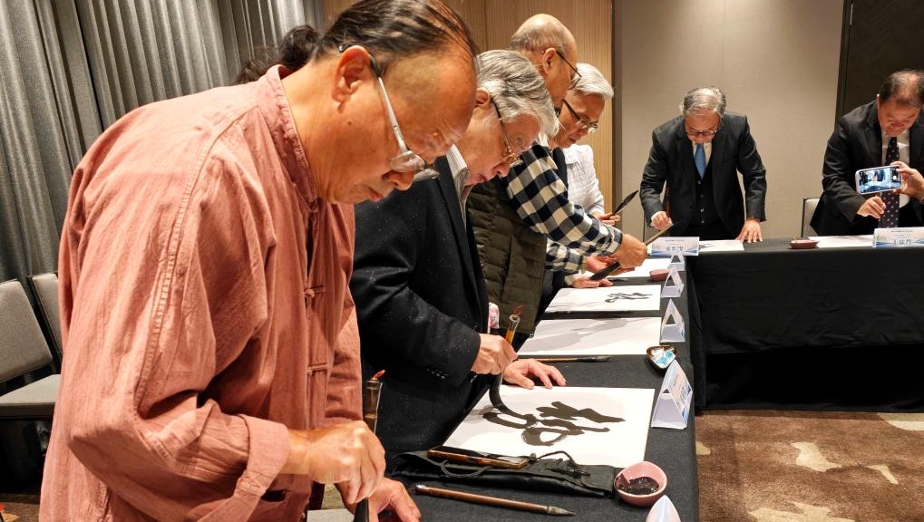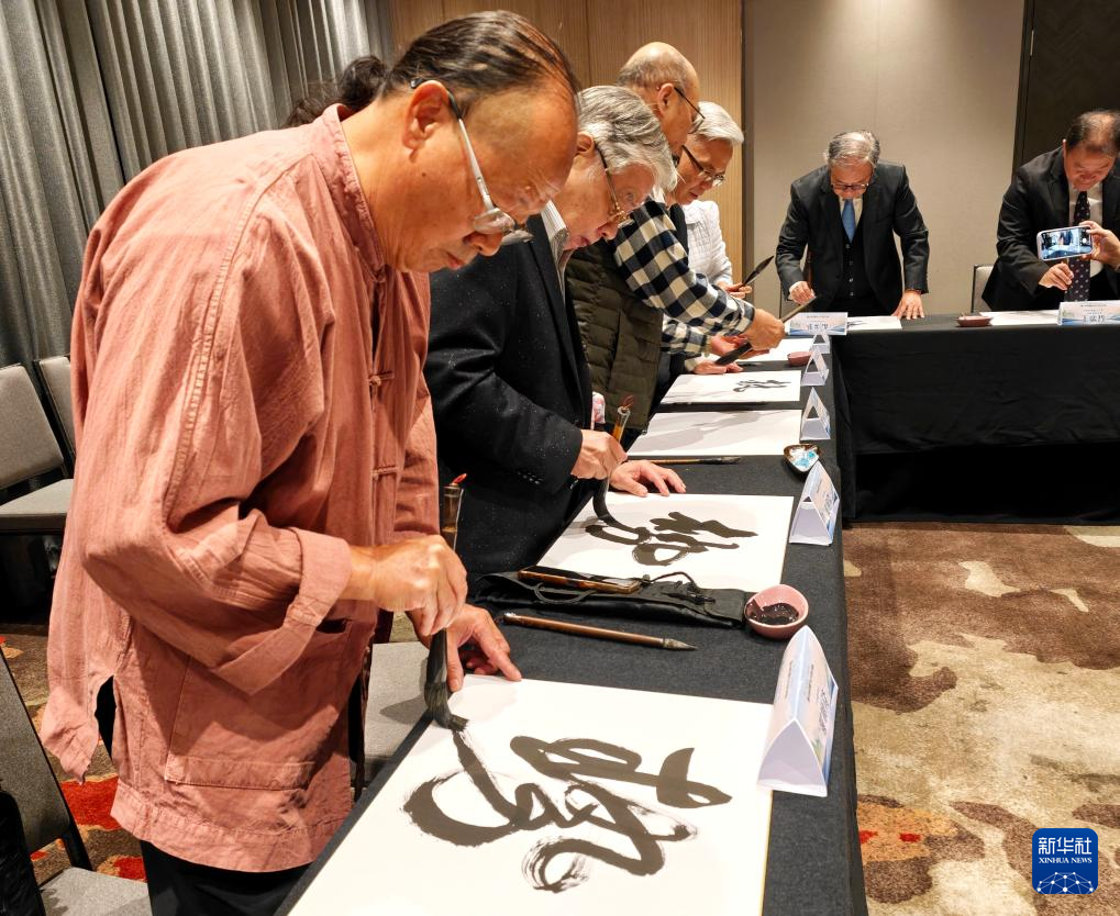 両岸関係機関による海峡両岸「今年の漢字」審査結果が9日、台北で発表された。「勢」が最も多くの票を獲得した。写真は会場の来賓が「勢」を書く様子。