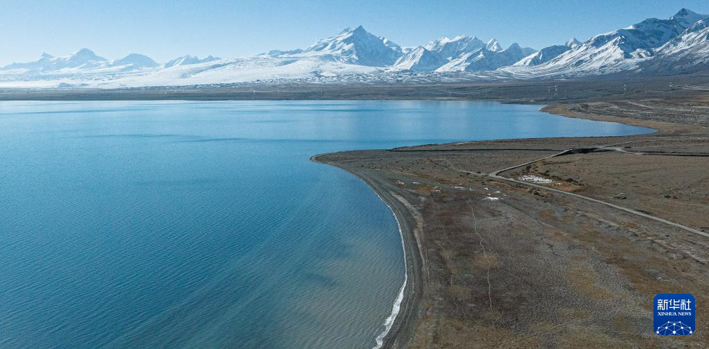 美しい中国 西蔵 青空に輝く佩枯錯を空撮