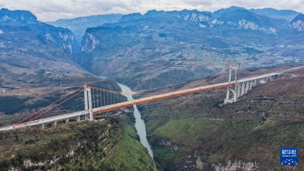 貴州省安盤(安順〜盤州)高速道路天門特大橋の主体工事がこのほど、無事完了した。天門特大橋は同高速道路の重要制御性プロジェクト。橋の全長は1553メートルで、その橋面は峡谷の水面から約560メートル離れている。