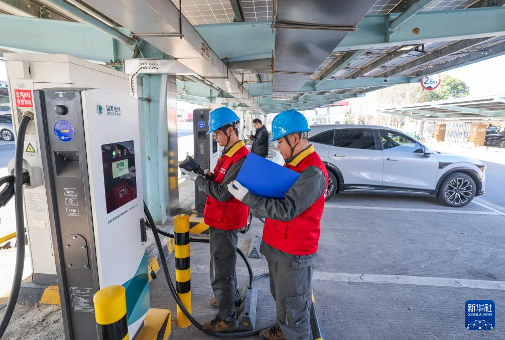 春節が近づく中、国家電網湖州給電公司は新エネ車の充電の需要を満たし、高速道路サービスエリアの利便性を高めるため、G50滬渝高速道路長興サービスエリアの充電設備をアップグレードした。グリーンな移動を支援する。