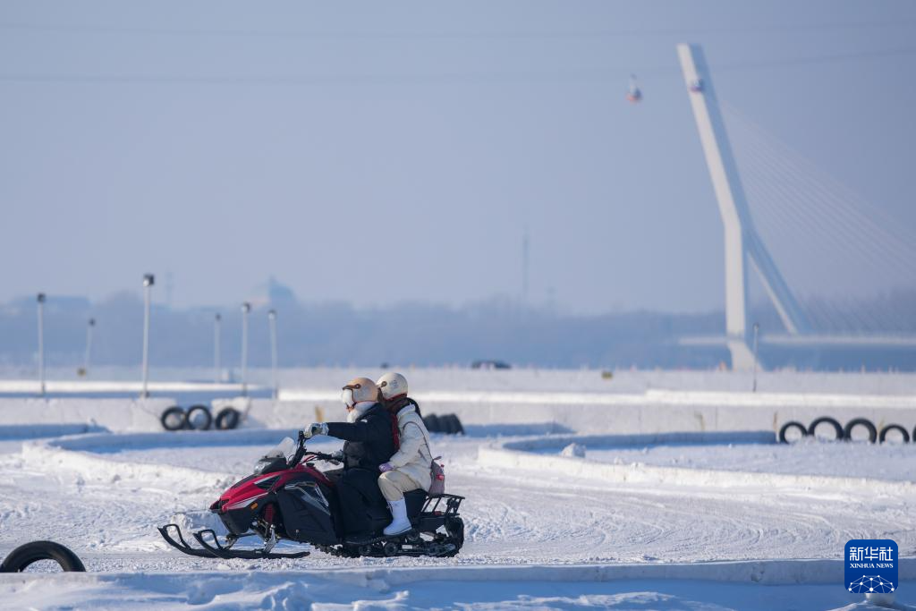 松花江が氷雪の遊び場に