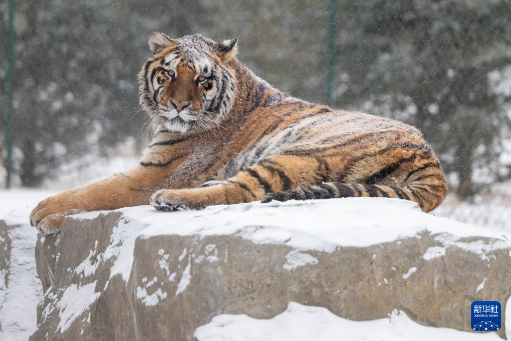 「氷の都市」哈爾浜(ハルビン)市は12日、降雪に見舞われた。黒竜江アムールトラ林園の放し飼いエリアでは、アムールトラたちが雪の中で活動する様子が見られた。