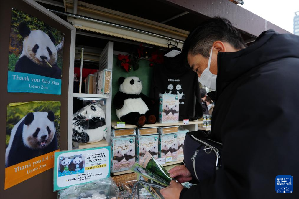 2025年12月25日、東京・上野動物園で、ジャイアントパンダ「シャオシャオ」と「レイレイ」の記念品を購入する観光客たち