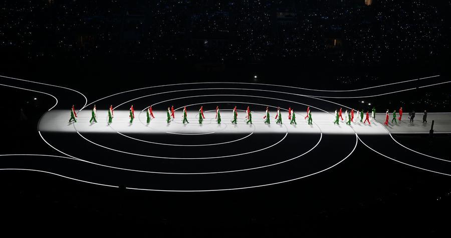 6日、イタリア国旗の色を象徴する衣装を身にまとうパフォーマンスの出演者。(ミラノ=新華社記者/程敏)