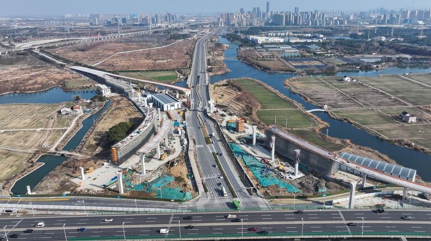 蘇州市相城区で建設中の「高速鉄道蘇州北駅快速連絡道路」では、第1工区の工事が計画通り進み、高架道路の箱桁コンクリート打設がすでに半分以上完了した。