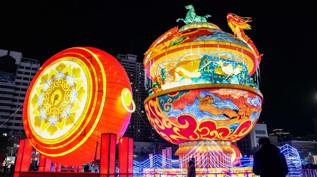 甘粛省蘭州市の黄河鉄橋中山橋や東方紅広場など、市内のランドマークや主要道路に設置されたイルミネーションが10日、一斉に点灯された。