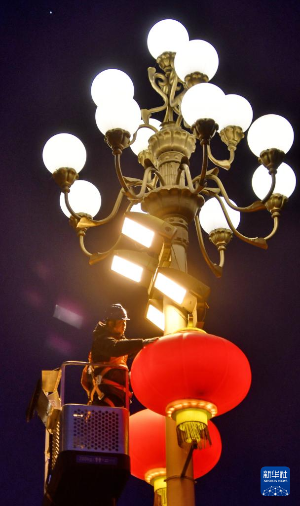 北京の長安街、赤い提灯で華麗に