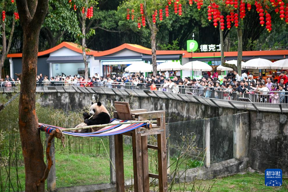 重慶動物園のジャイアントパンダ、屋外で暖かな日差しを満喫