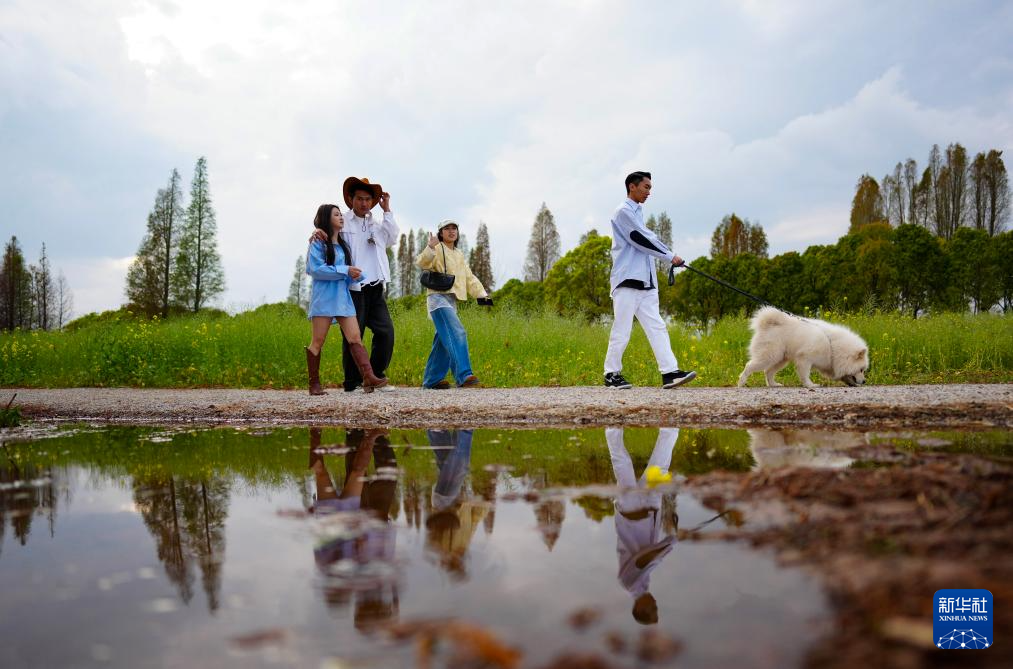 春の滇池に訪れる観光客