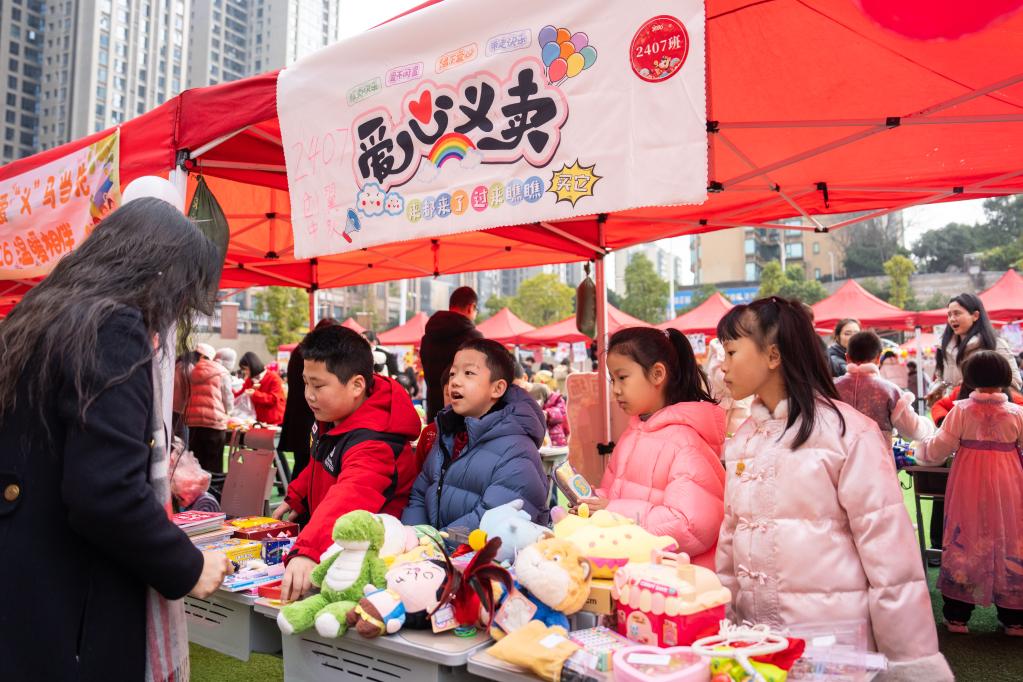 小学校でチャリティーバザー 中国・長沙市