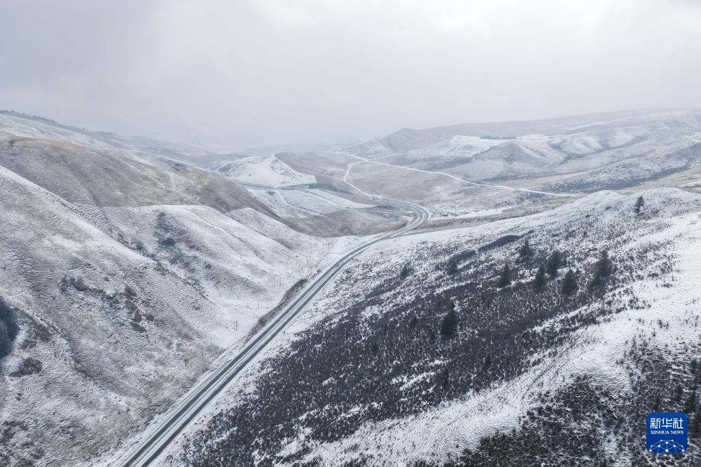 青海省海北蔵族自治州祁連県は8日、降雪に見舞われた。雪が降り積もった後の高原の景色は壮麗で、美しさが際立つ。