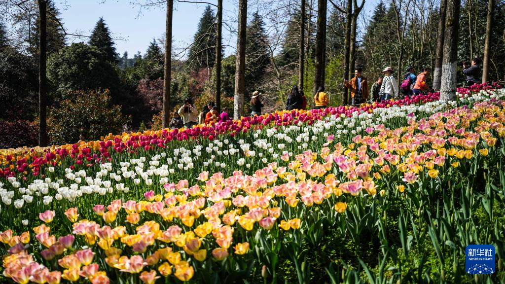 貴州省黔南布依(プイ)族苗(ミャオ)族自治州竜里県の竜架山国家森林公園では最近、数万株のチューリップが競うように咲き誇り、各地から多くの観光客が訪れ花見や観光を楽しんでいる。