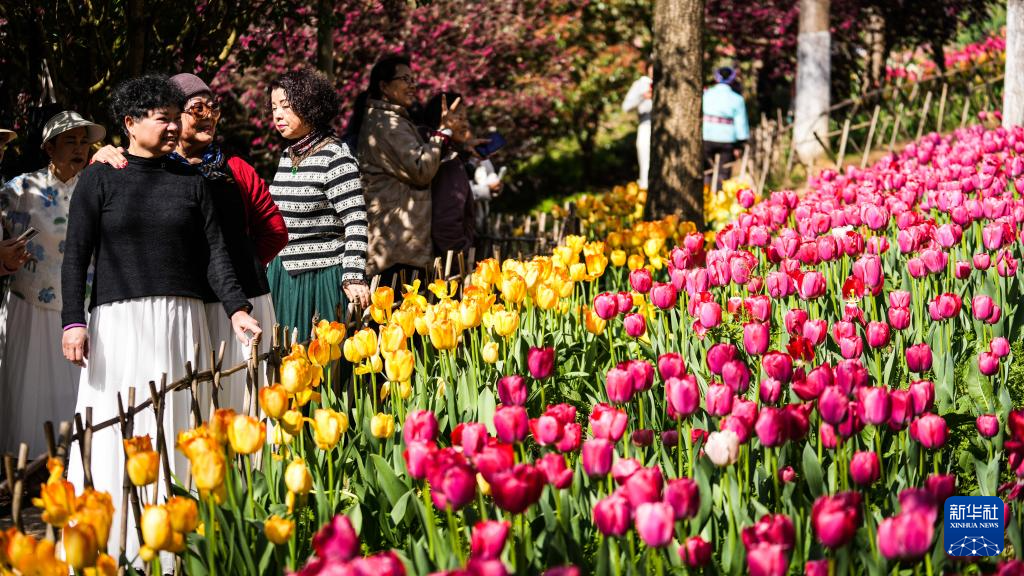 貴州省黔南布依(プイ)族苗(ミャオ)族自治州竜里県の竜架山国家森林公園では最近、数万株のチューリップが競うように咲き誇り、各地から多くの観光客が訪れ花見や観光を楽しんでいる。