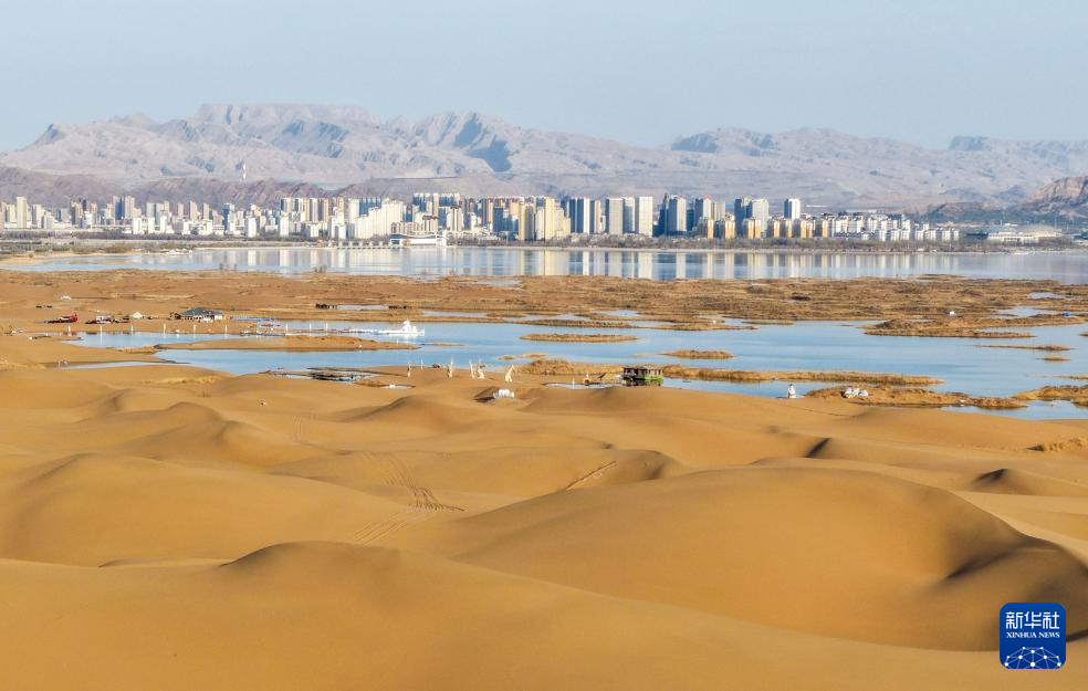 内蒙古・烏海 砂と水が寄り添い、カモメが舞い集う